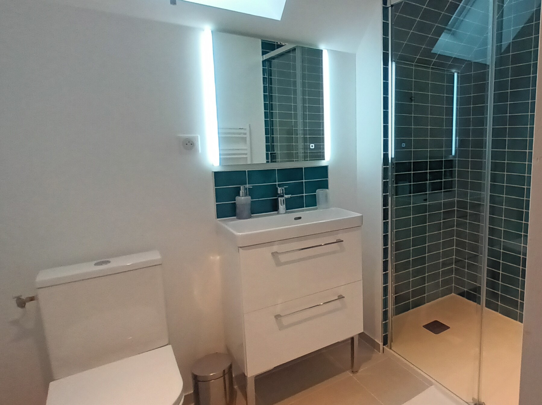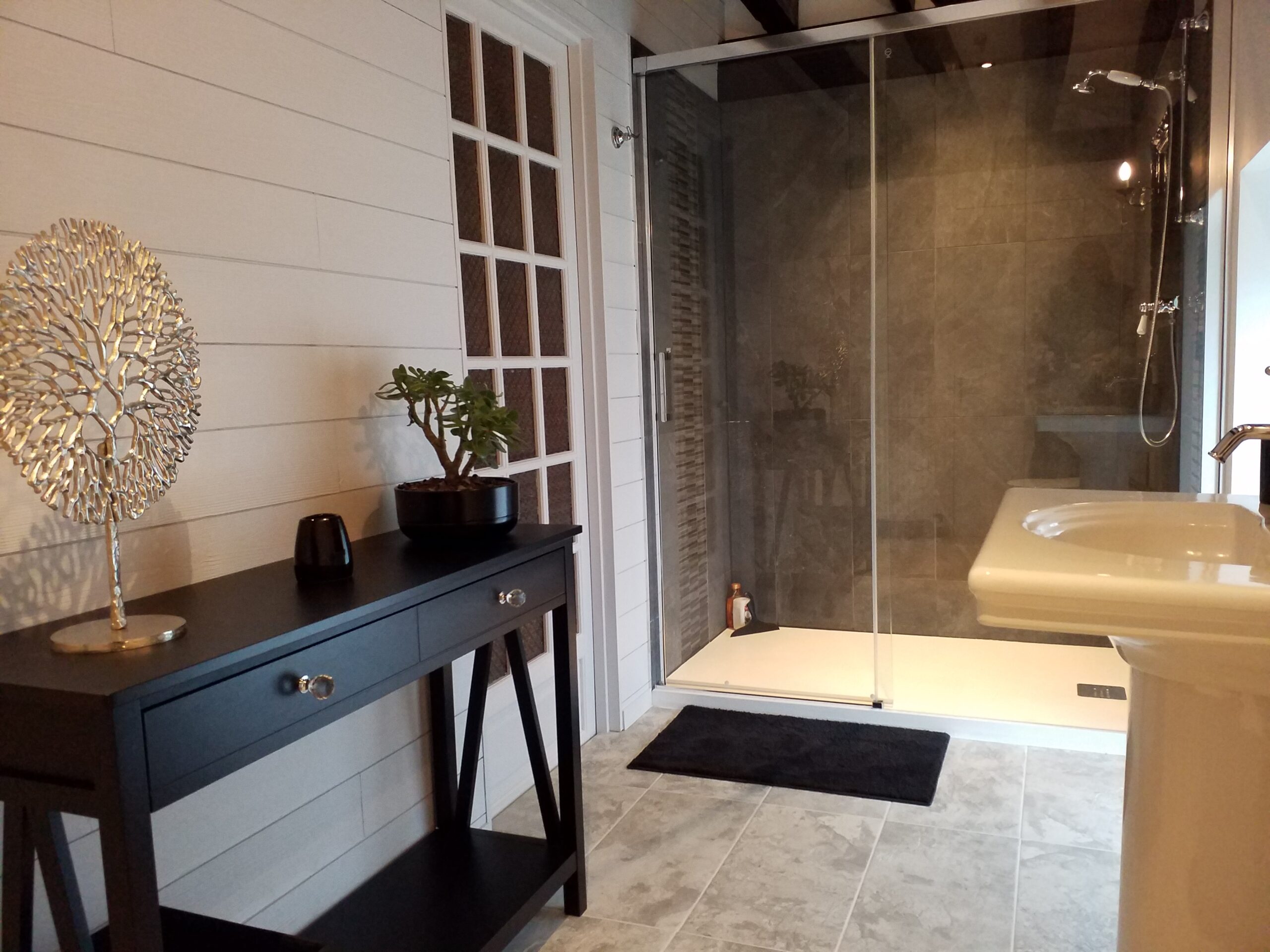 Salle de douche & WC privatifs. Sèche-cheveux, linge de toilette, produits de douches