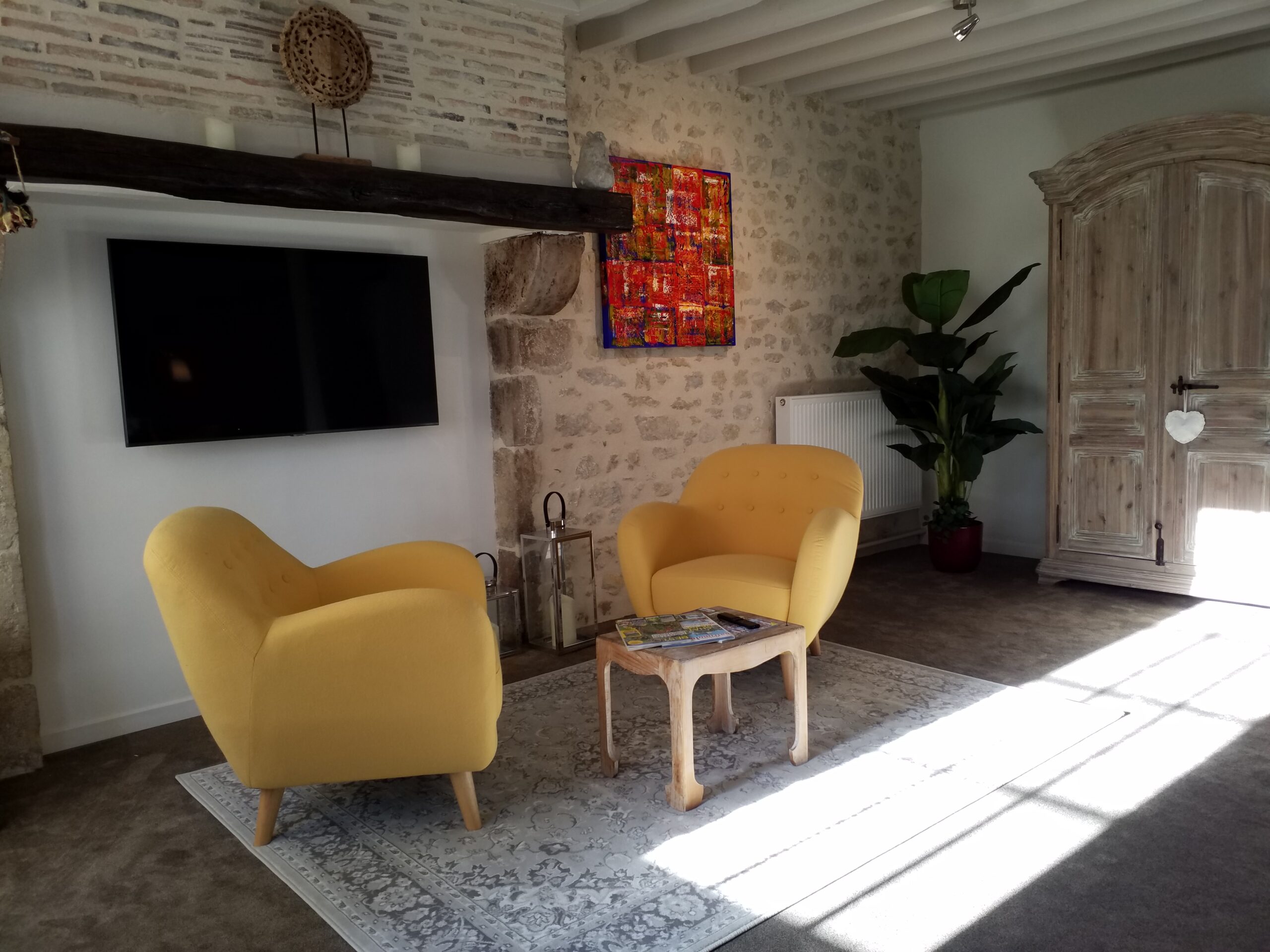 personnes): Grande pièce avec un lit (160×200), un salon équipé d’un téléviseur grand écran.